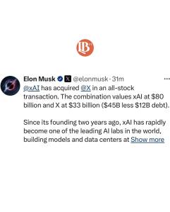 Elon Musk on Friday evening announced he has sold his social media company, X, to xAI, his artificial intelligence company. xAI will pay $45 billion for X, slightly more than Musk paid for it in 2022, but the new deal includes $12 billion of debt. #lastbreedtvfriday