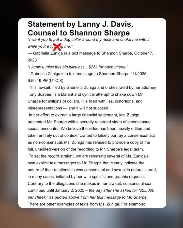 Shannon Sharpe has since released text messages detailing their interactions and vehemently denies the allegations