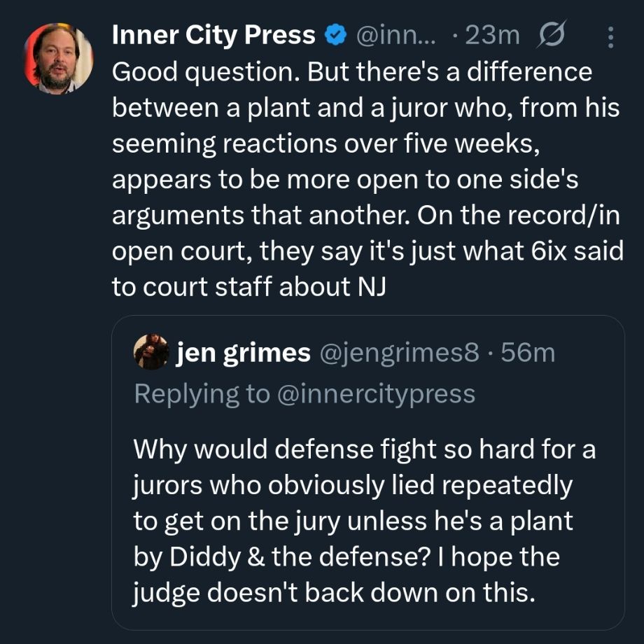 The question remains: was Juror 6 a plant by Diddy, or is it just a mere coincidence. The Judge has decided to put a pin on the matter until more facts are ascertained.