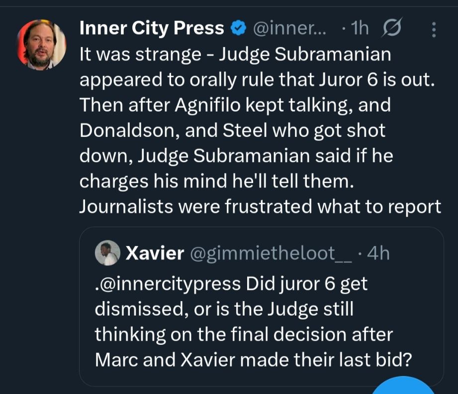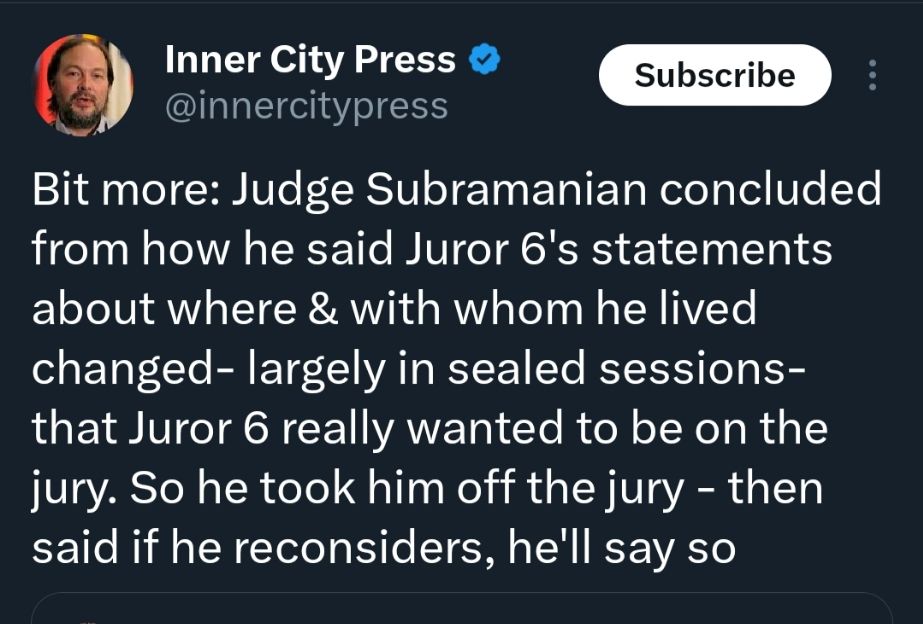With the above in mind, Judge Subramanian then decided to remove Juror 6 from the Jury with immediate effect.